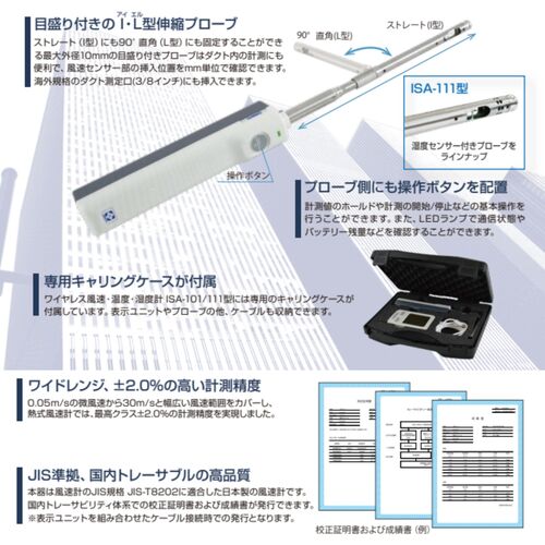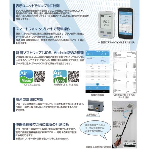 ●測定精度:風速:±指示値の2%または0.05m/sの大きい方 温度:±0.5℃