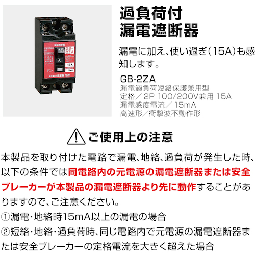 ●漏電遮断器仕様:漏電過負荷短絡保護兼用