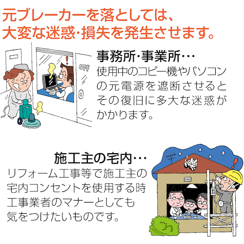 ●改修工事・リフォーム工事、清掃中などに元電源を落としてしまうトラブルを回避に。
