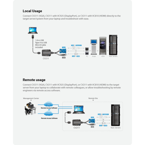 ●ノートパソコンからコンピューターへのダイレクトなデスクトップアクセスを実現するUSB KVMコンソールアダプターです。