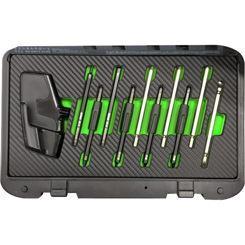 ●No.1用Initialビット、No.2用Initialビット、対辺2.5~3mm用Initialビット、対辺4mm用Initialビット、対辺5mm用Initialビット、No.2用Finalビット、対辺2.5~3mm用Finalビット、対辺4mm用Finalビット、対辺5mm用Finalビット、締付け用両頭ビット、バズーカグリップ、専用ケース