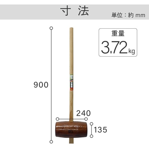 ●頭部の長さ240mm 頭部の胴径135mm 柄長さ900mm