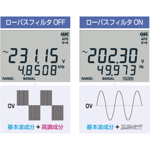 ●ローパスフィルタ100Hz/500Hzで高調波カットしています。