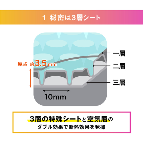 ●シート厚さ約3.5ミリの三層構造の空気層で断熱効果アップ
