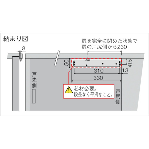 ●扉が閉まる際、70mm手前からブレーキ機能によりゆっくり閉まるので、「バタン」という衝突音が小さくなり、防音対策に効果的です。