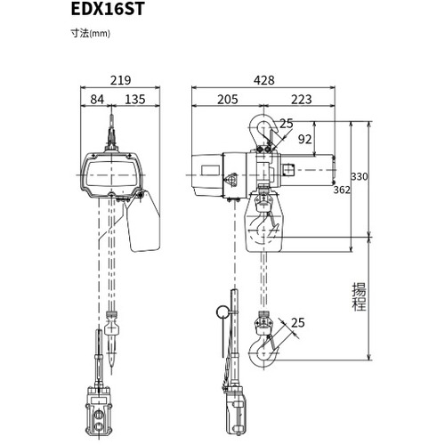 KITO 電気チェーンブロック EDX形 キトーセレクト 定格荷重160kg 揚程3m 単相200V 2速形【選べる定格荷重】 EDX16ST EDX16ST