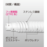 ●内層が4フッ化系フッ素樹脂(ETFE)のため、優れた耐溶剤性・耐薬品性を有し、ほとんどの薬品に耐性があります。