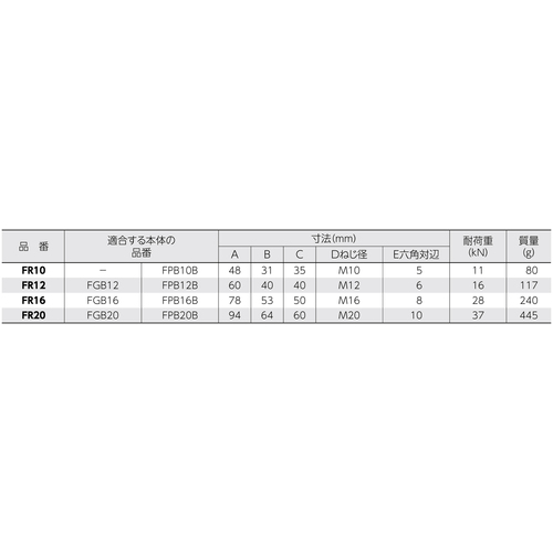 9. スーパー スクリューサポート(ねじ型)ねじ径:M20 六角対辺:10 FR-20