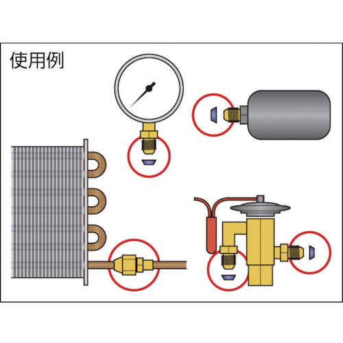 ●ルームエアコン、パッケージエアコン、業務用空調機、冷凍・冷蔵庫、ショーケースなどの配管、部品接続に使われるフレア継手からの冷媒漏れの防止に。