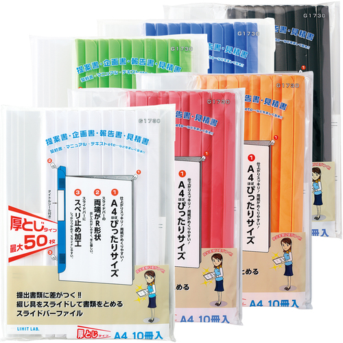LIHIT A4/S厚綴じスライドバーファイル(10冊入) 白 G1730-0