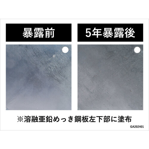 ●光輝性亜鉛フレークを含有することにより、亜鉛メッキと同様の退色機能を実現しました。