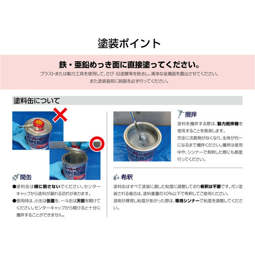 ●缶底部に沈殿物がないことを確認できるまで十分撹拌してから使用してください。