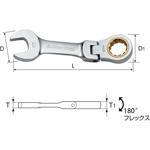 スーパー ギアレンチ フレックスショートタイプ 呼び:12 L=111mm GRW12FS