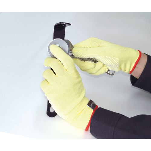 ●ポリ塩化ビニールのすべり止め付耐切創手袋です。