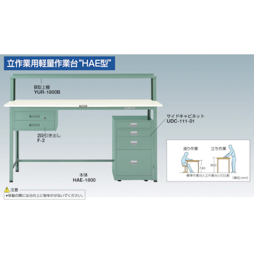 TRUSCO 軽荷重立作業台(300kg)HAE型 1800X750XH900 薄型1段引出付 ホワイト色 HRAE-1800UDK1 W