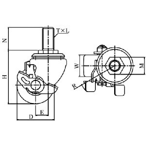ユーエイ ねじ込み式 自在 低床キャスター 強化ナイロン 車輪径50mm ストッパー付き Hタイプ HT-S型 ネジ寸法M16×40ピッチ2 HT-50GNBS-M16-40