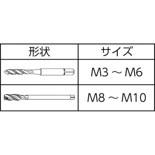 ●溝がねじれており、切りくずが進行方向とは逆に排出されますので、止り穴のねじ立てにお使いください。
