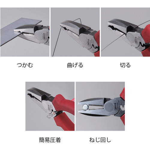 ●「つかむ」「曲げる」「切る」「簡易圧着」「ネジ回し」といった作業に。