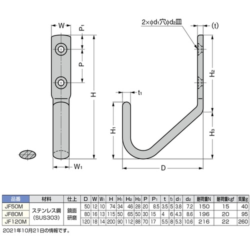 9. SUGATSUNE (110020072)JF50Mステンレス鋼製ジャンボフック JF50M