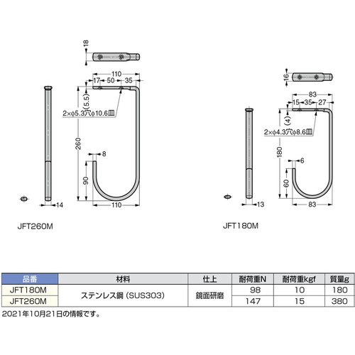 SUGATSUNE (110020081) JFT260M ステンレス鋼製ジャンボフック JFT260M