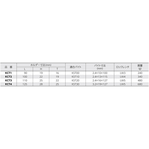9. SUPER 突切りホルダー(バイト付)ホルダー寸法:W16×H19×L90 適合バイト:KST00 KCT1