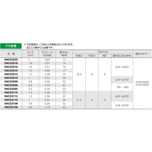 スーパー 切削ローレット駒(アヤ目用)ピッチ:1.0 外径A:21.5 KNCD2110