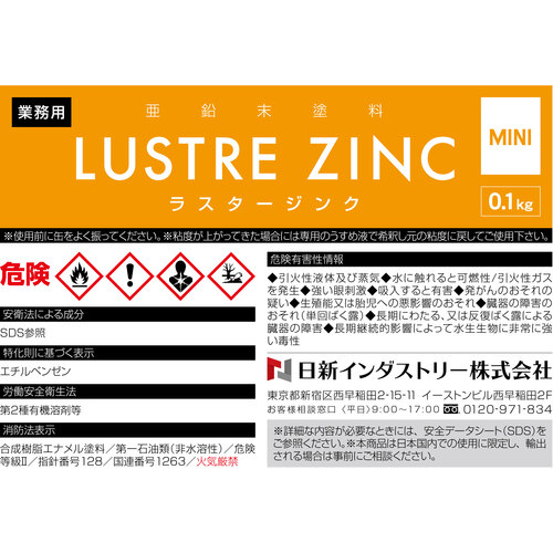 ●主成分:亜鉛末(フレーク粉末)、アルミ粉、エポキシ樹脂、溶剤、添加剤