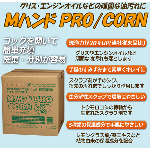 ミドリ安全 ハンドクリーナー Mハンド PRO/CORN 18KG詰替え用BIB容器 MHAND-PRO/CORN-18KG