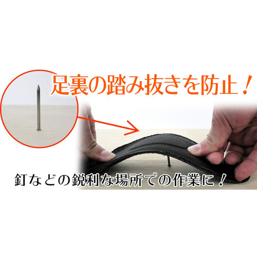 ●鋭利な物から足裏を守るステンレス製の踏み抜き防止板が内装されています。