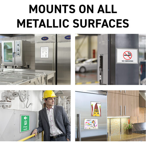 ●マグネット式で何度でも繰り返し掲示物を取り換え可能です。