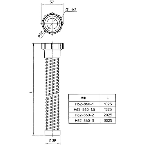 SANEI 流し排水栓ホース ネジ式 1m G1 1/2 PH62-860-1