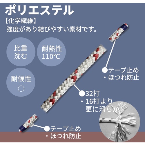 ●酸・アルカリ・海水等に強く、耐候性に優れ摩擦にも非常に強く、強度に優れたロープです。