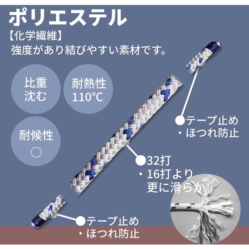 ●酸・アルカリ・海水等に強く、耐候性に優れ摩擦にも非常に強く、強度に優れたロープです。