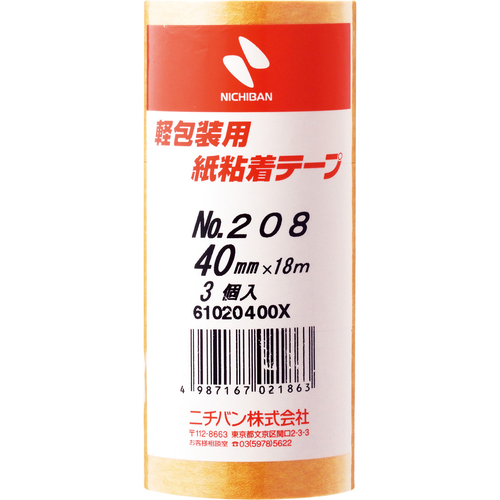 ニチバン 紙粘着テープ208H-40 40mmX18m(3巻入り) 208H-40