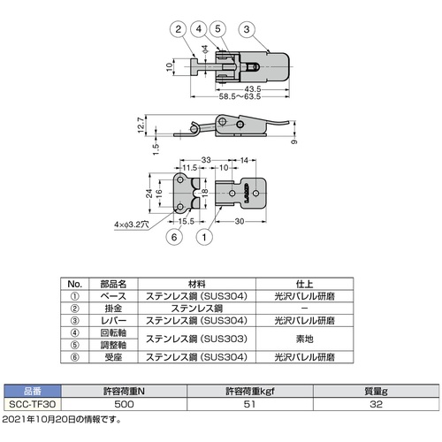 SUGATSUNE (120028716)SCC-TF30ステンレス鋼製小型ファスナー SCC-TF30