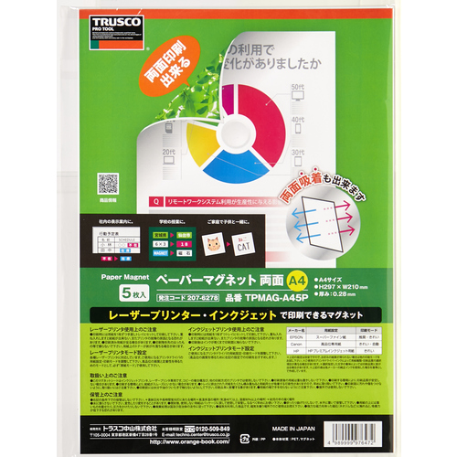 9. TRUSCO ペーパーマグネット 両面タイプ A4 5枚入り TPMAG-A45P