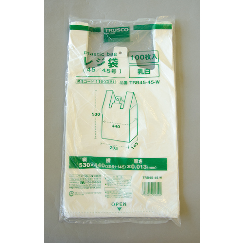 9. TRUSCO レジ袋 45/45号 530X440(295)mm 乳白 100枚入 TRB45-45-W