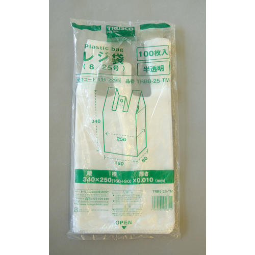 TRUSCO レジ袋 8/25号 340X250(160)mm 半透明 100枚入 TRB8-25-TM