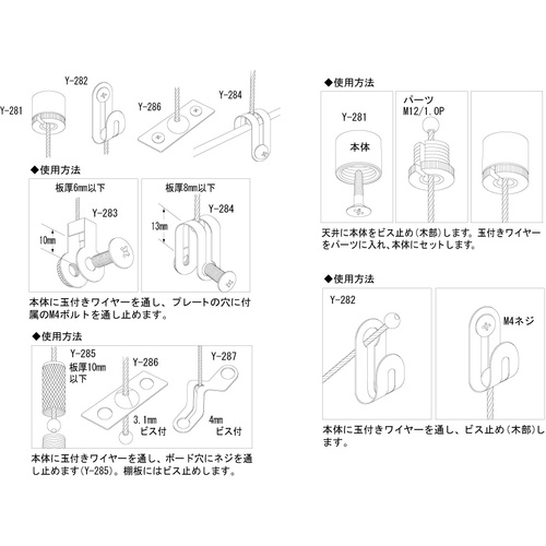 ●適合玉付きワイヤロープ:Y-501~Y-509