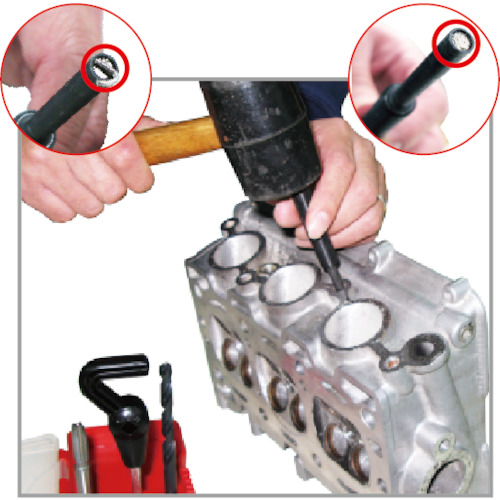 ●下穴用ドリルと専用タップがついており、挿入工具はタップハンドルとしても使用できます。