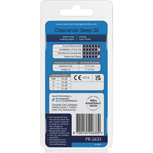 Crescendo 耳栓 騒音吸収フィルター Sleep NRR16dB PR-2633