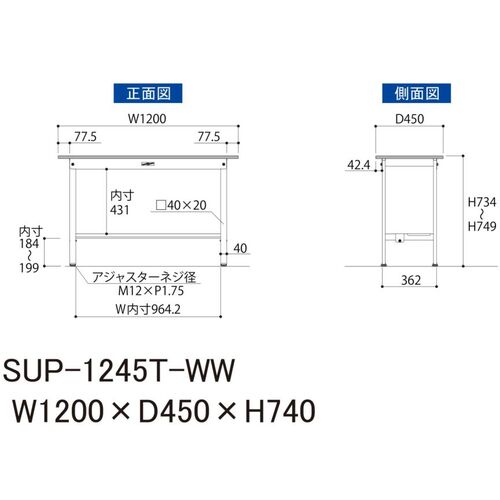 ヤマテック 軽量作業台 ワークテーブル150シリーズ 固定式 半面棚付 低圧メラミン天板 W1200×D450×H740mm シルキーホワイト SUP-1245T-WW
