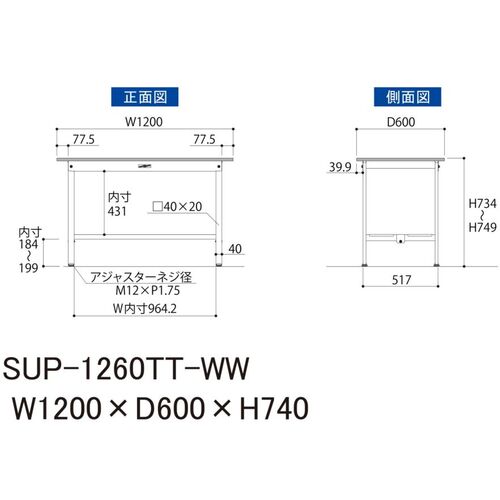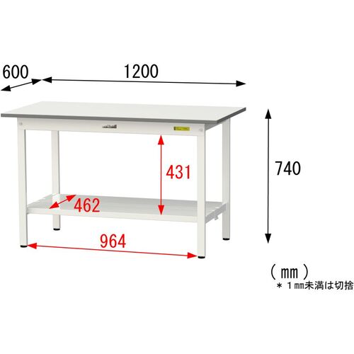 ヤマテック 軽量作業台 ワークテーブル150シリーズ 固定式 全面棚付 低圧メラミン天板 W1200×D600×H740mm シルキーホワイト SUP-1260TT-WW