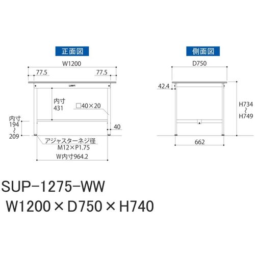 ヤマテック 軽量作業台 ワークテーブル150シリーズ 固定式 低圧メラミン天板 W1200×D750×H740mm シルキーホワイト SUP-1275-WW