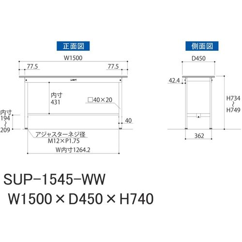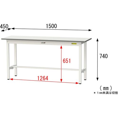 ヤマテック 軽量作業台 ワークテーブル150シリーズ 固定式 低圧メラミン天板 W1500×D450×H740mm シルキーホワイト SUP-1545-WW