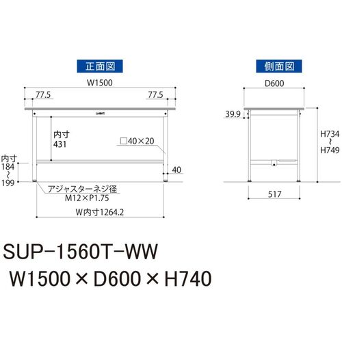 ヤマテック 軽量作業台 ワークテーブル150シリーズ 固定式 半面棚付 低圧メラミン天板 W1500×D600×H740mm シルキーホワイト SUP-1560T-WW