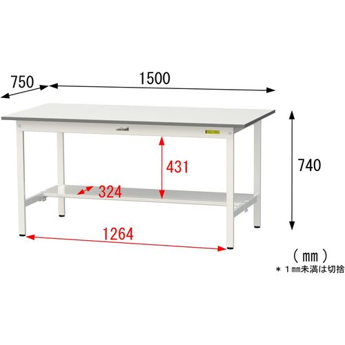 ヤマテック 軽量作業台 ワークテーブル150シリーズ 固定式 半面棚付 低圧メラミン天板 W1500×D750×H740mm シルキーホワイト SUP-1575T-WW