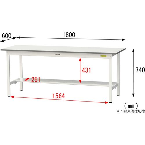 ヤマテック 軽量作業台 ワークテーブル150シリーズ 固定式 半面棚付 低圧メラミン天板 W1800×D600×H740mm シルキーホワイト SUP-1860T-WW