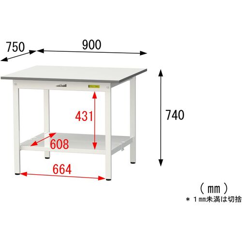 ヤマテック 軽量作業台 ワークテーブル150シリーズ 固定式 全面棚付 低圧メラミン天板 W900×D750×H740mm シルキーホワイト SUP-975TT-WW