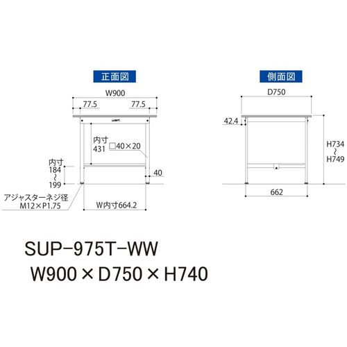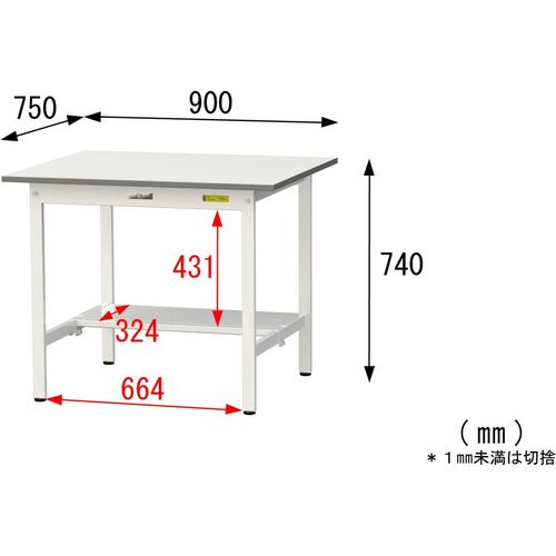 ヤマテック 軽量作業台 ワークテーブル150シリーズ 固定式 半面棚付 低圧メラミン天板 W900×D750×H740mm シルキーホワイト SUP-975T-WW